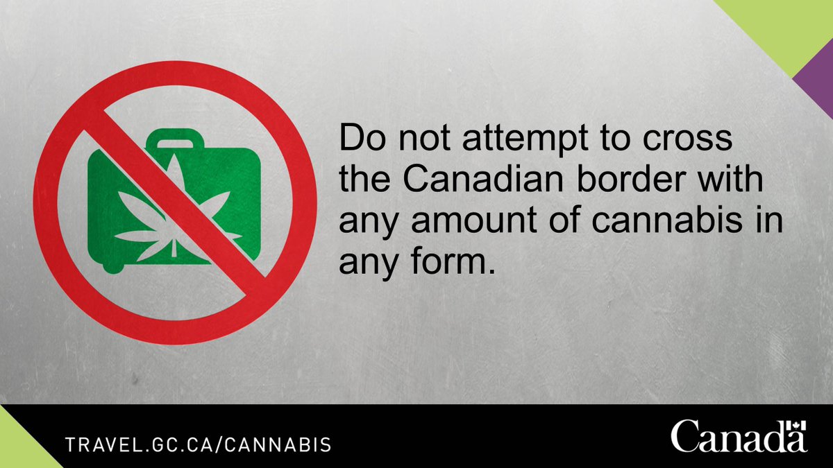 #CannabisAct comes into force tomorrow. Border rules will not change. Do not attempt to cross the Canadian border with any amount of#cannabis in any form. http://ow.ly/pcWF30mg0C1#Marijuanapic.twitter.com/KscAsjAvDt