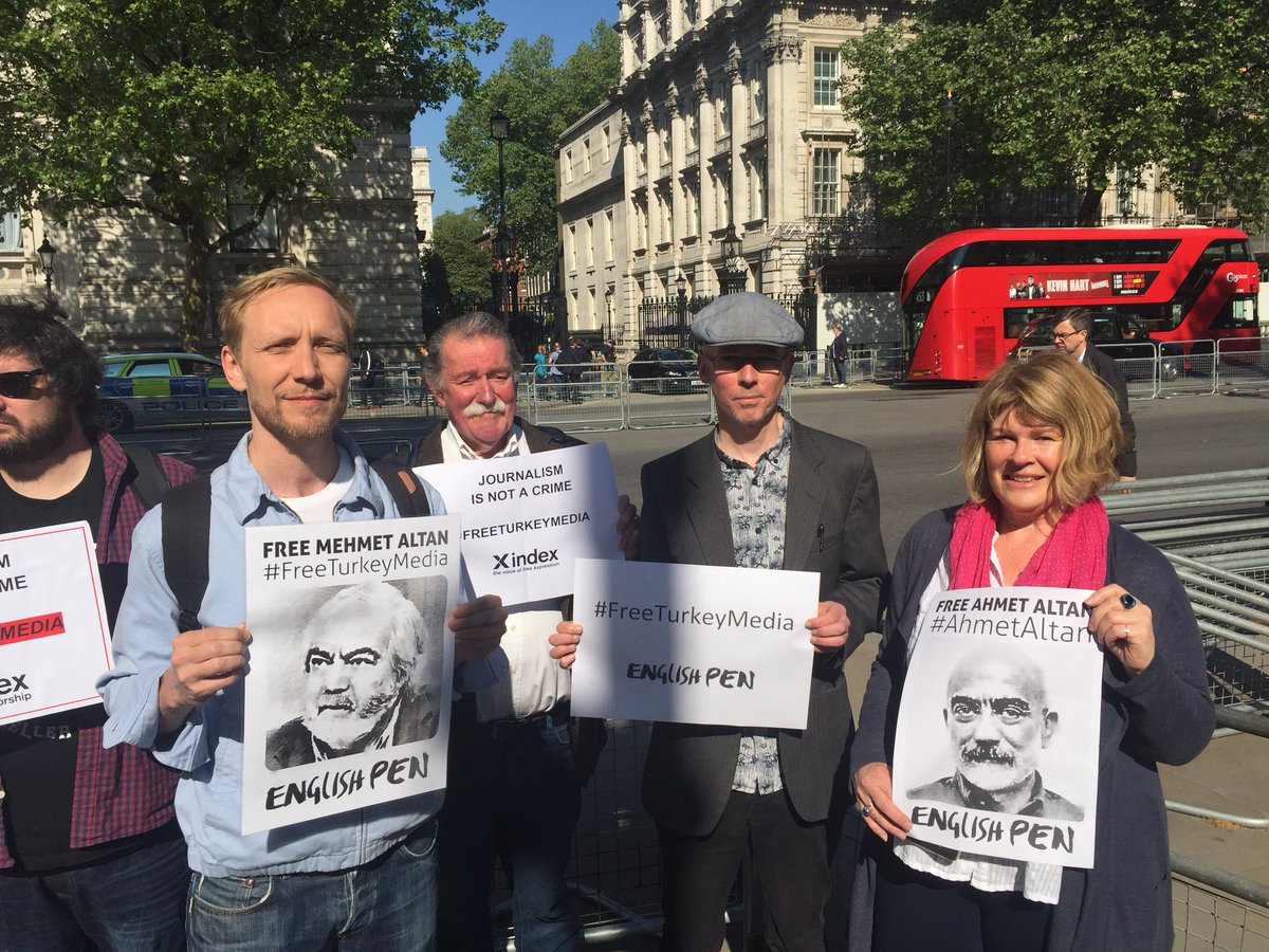 #FreeTurkeyMedia protest at 10 Downing Street where Prime Minister@theresa_may will be hosting#Turkey's President Erdogan later today.#JournalismIsNotACrimepic.twitter.com/RLkGjbtvlx