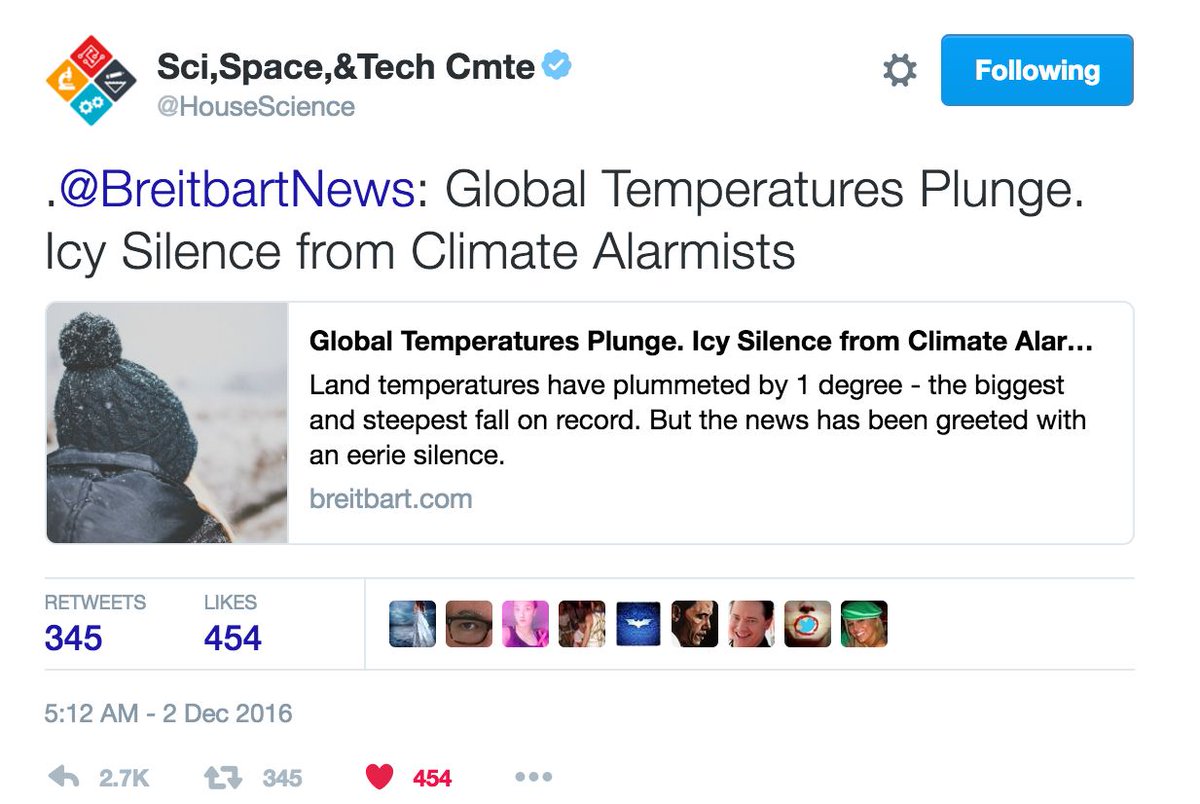 GOP-led science committee sends Twitter followers to Breitbart for climate misinformation |