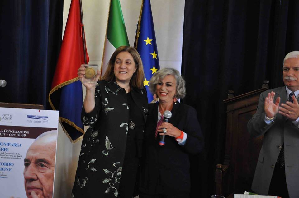#Assisi@CatiusciaMarini ha ricevuto dalla figlia del premio Nobel per la#pace#ShimonPeres il premio Peres center for peace#Todapic.twitter.com/zxYU8OrMqm