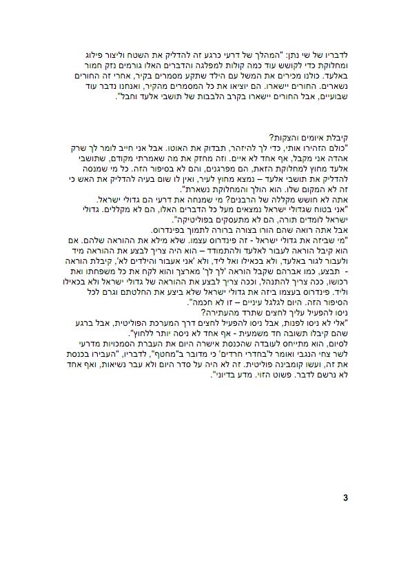 אברהם רוזנטל, ראש מועצת קריית יערים, במכתב מלא כאב לרבני "דגל התורה": "לאחר עשרות שנות נאמנות שופכים את דמי ואת דם משפחתי. מפיצים עלי שמועות זדוניות, שאני מעוניין לפרוש מתפקידי, ואין אף אחד בתנועת דגל התורה שמוכן לעזור לי להפריך אותם".