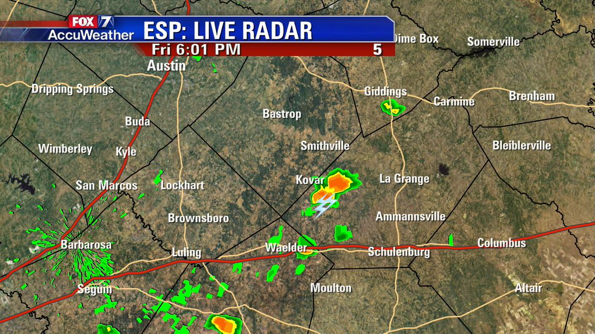 10. Fayette County getting some rain and lightning right now. Storms slowly drifting into Bastrop Co.