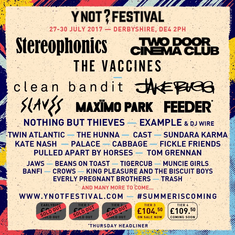 Excited to announce we're playing the brilliant Y Not Festival this year with some other brilliant acts. Tix here: http://www.ynotfestivals.co.uk/2017-tickets/ pic.twitter.com/5Ohvpj4Rns