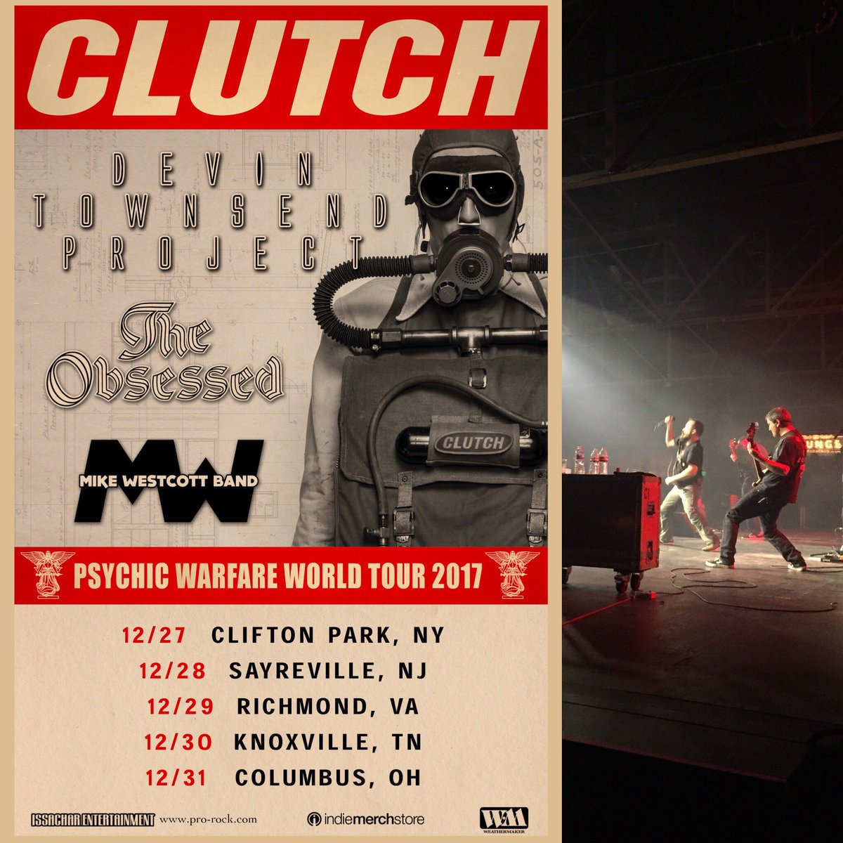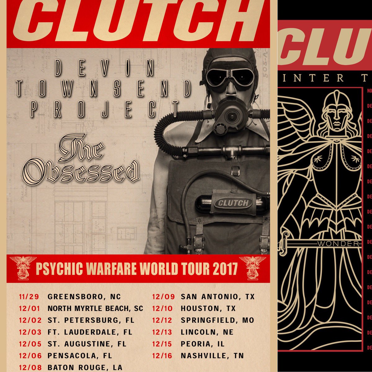@Clutchofficial - Psychic Warfare World Tour 2017 w/sg@Dvntownsend and@TheObsessedofc on Friday, 12/1! Get yours now at http://hoblu.es/dbs pic.twitter.com/bxbZUShhQ7