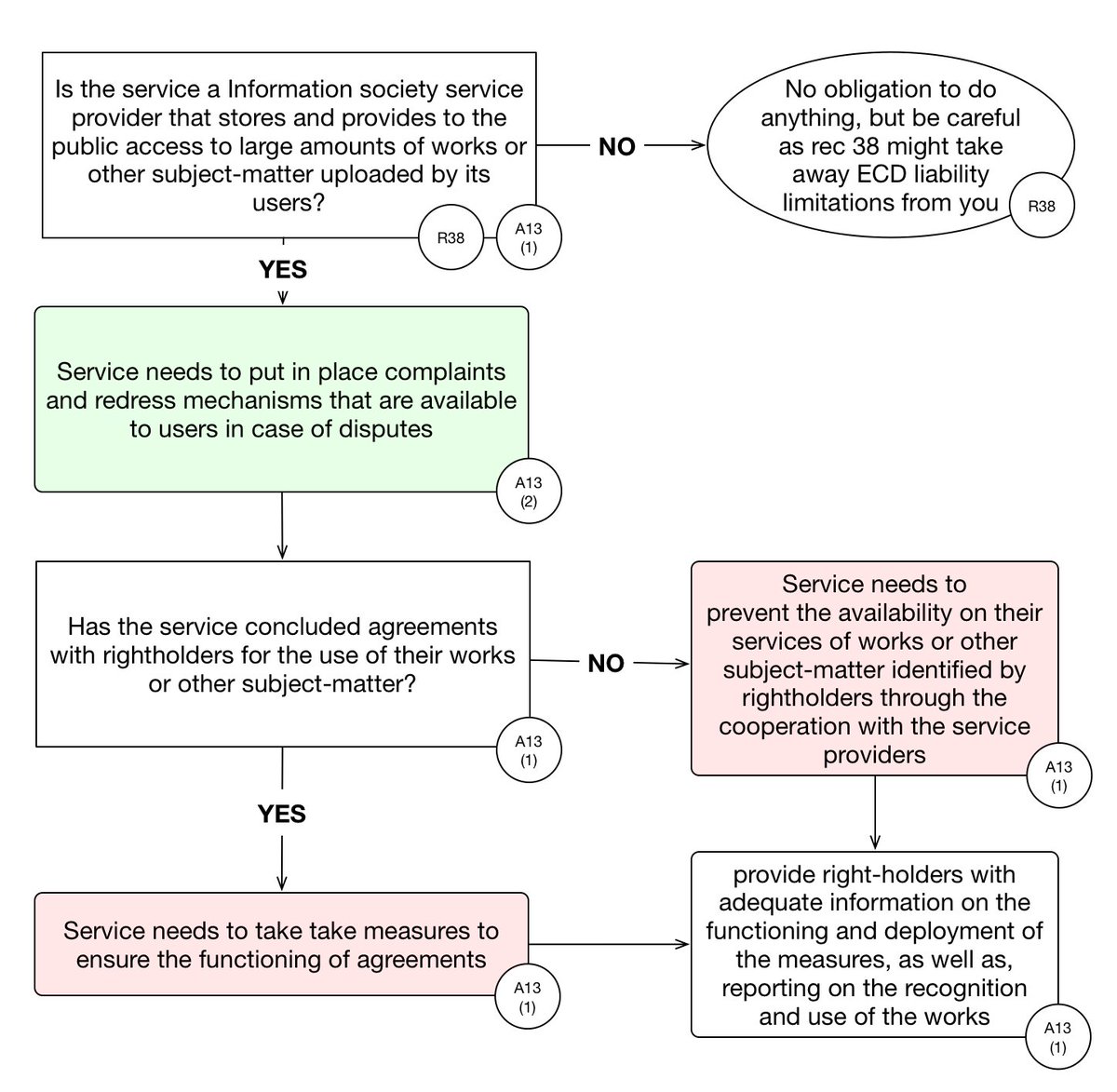 we have made flowcharts of how the 3 versions of the infamous article 13 of the new EU copyright directive would work. Our key takeaway? the is a mess and will be bad for EU internet users and the digital economy alike: