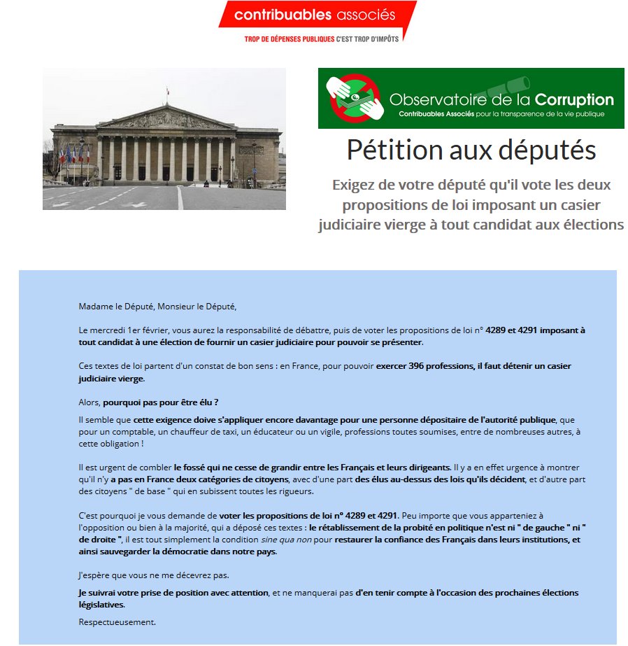 [Alerte Mobilisation] Exigez un casier judiciaire vierge pour des élus propres - Contribuables Associés http://ift.tt/2kxGBsU