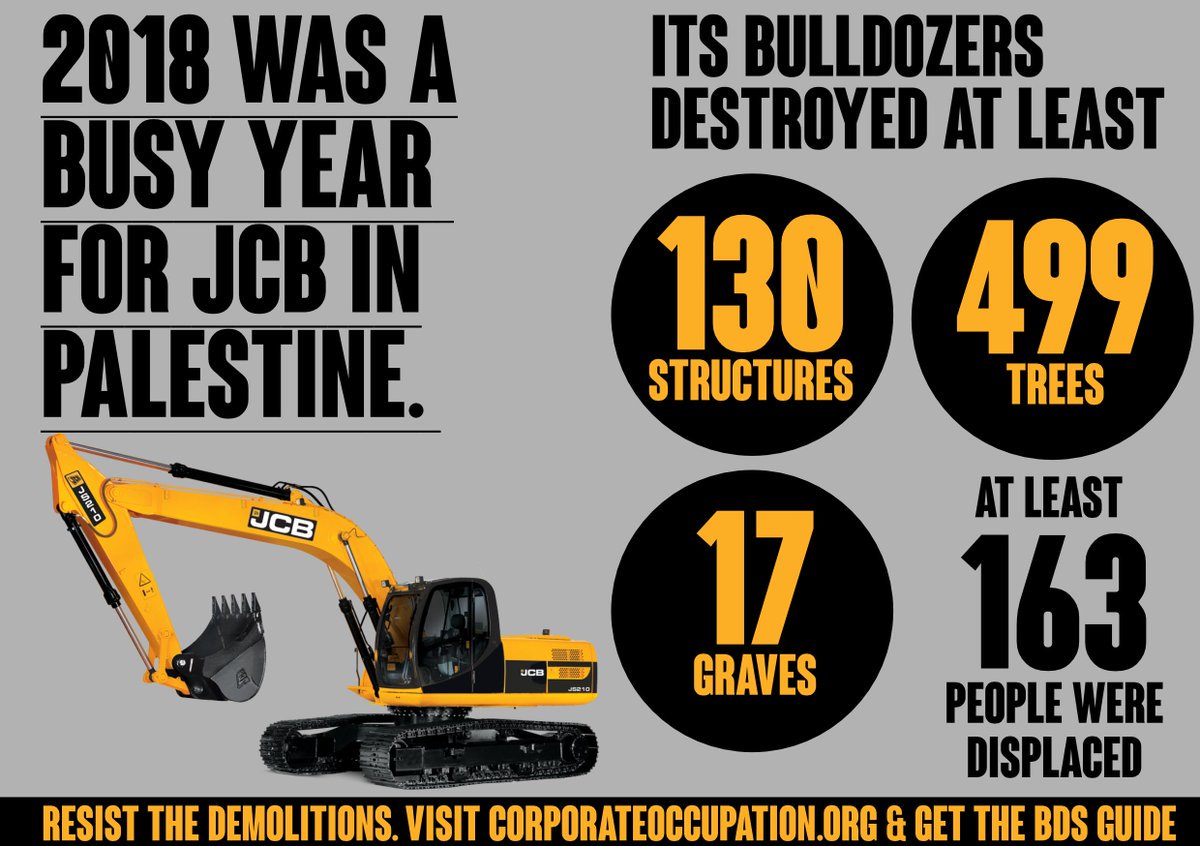@corpoccupation has carefully documented the companies involved.@JCBmachines@CaterpillarInc@Hyundai_Global@VolvoGroup are all complicit in Israel’s war crimes.#BDS Learn more: http://corporateoccupation.org/2019/03/07/new-book-resisting-demolitions-in-palestine/ …pic.twitter.com/UAWLPj2gnU