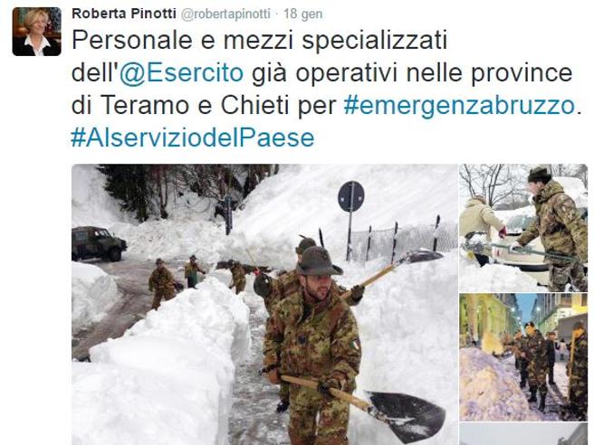12. La gaffe di Roberta Pinotti: «Esercito già operativo». Ma la foto è del 2014 (a Cortina)