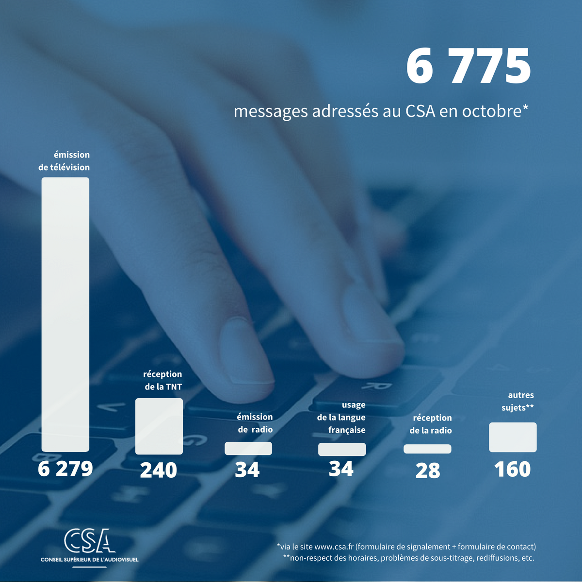 En octobre, près de 7 000 messages ont été adressés au CSA via le formulaire de signalement http://bit.ly/AlerterLeCSA pic.twitter.com/1pjtPZrEZo