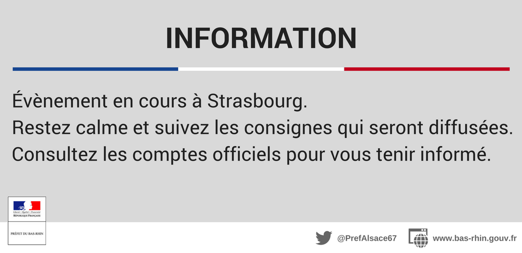 #Strasbourg La situation est toujours en cours, la priorité est à l'intervention des forces de sécurité et de secours. Ne diffusez pas de fausses informations, suivez les comptes officiels@Prefet67@PoliceNat67@Place_Beauvaupic.twitter.com/CfvMYCp4Xt