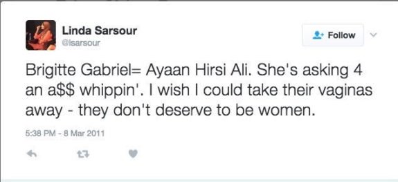 Here's one of Linda's old tweets where she wished she could cut off another woman's vagina. Linda advocates for Sharia law in the US too.pic.twitter.com/WkyIPNZlxD