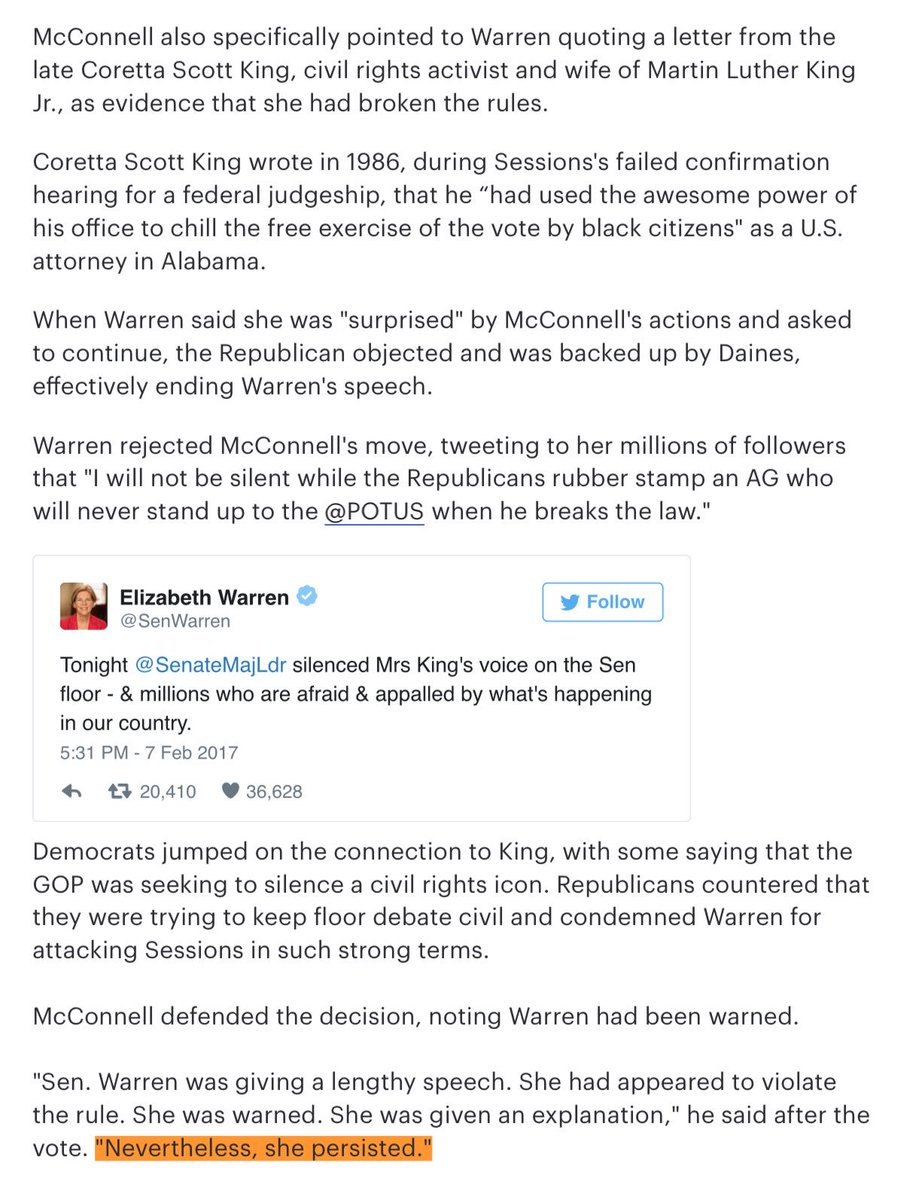 @SenWarren for trying to read a letter from Coretta Scott King.#LetLizSpeak -