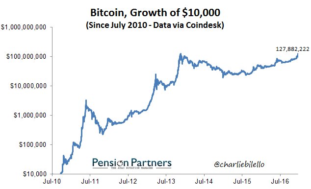 Bitcoin: $10,000 invested in July 2010 is worth over $127 million today.