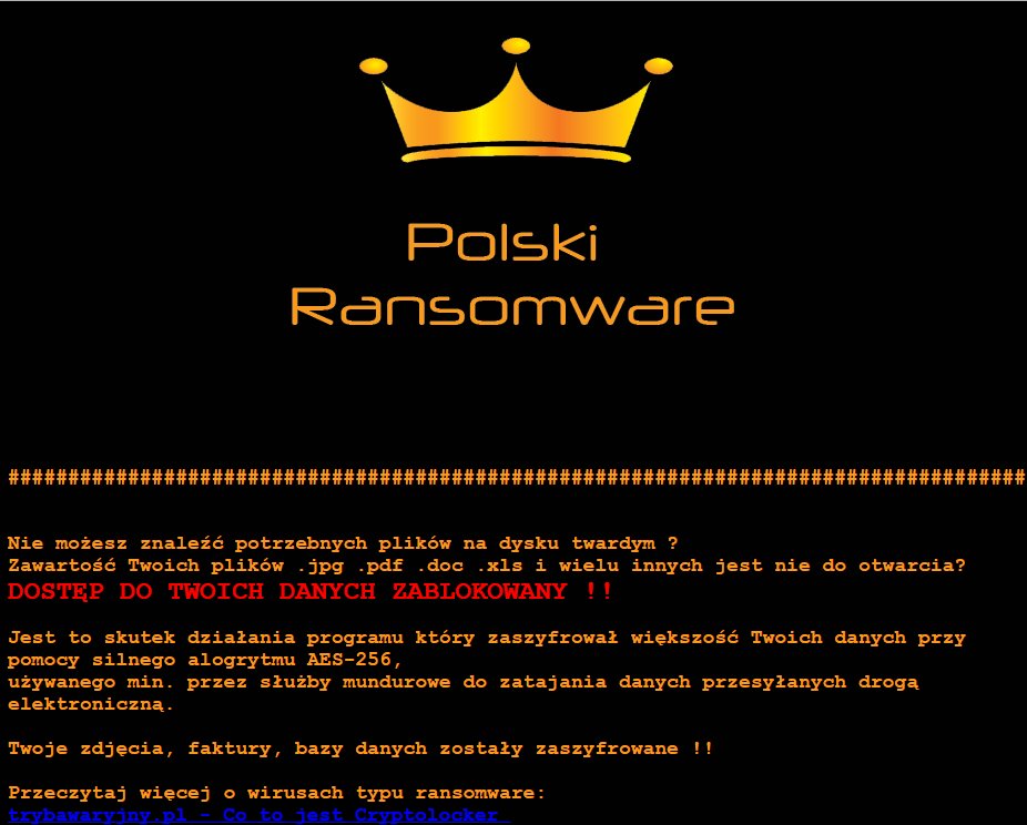 #Ransomware Hunt: "Polski Ransomware". Ext. ".aes256", note "!!! - - ODZYSKAJ-PLIKI - - !!!.htm": http://pastebin.com/EBa2jxUq pic.twitter.com/dJpR6eSFbk