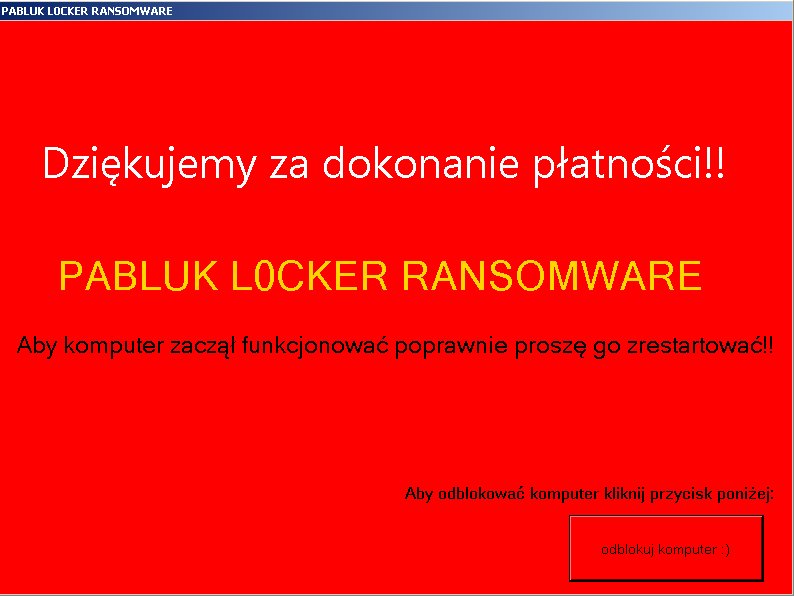 #ScreenLocker UnlockCode=pabluk400 https://www.virustotal.com/en/file/68f7d9c38e8ee8d04bbdd11534eb227f030a2f71f1bae572f0da12298cbf0af6/analysis/ … So many Polish#malware seen recently ¯\_(ツ)_/¯pic.twitter.com/GGLNzGGpew