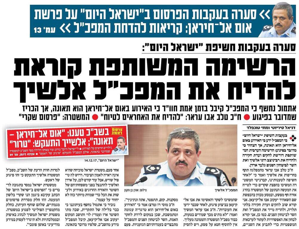 האמת היא שהאינטרס המשותף של ״ישראל היום״ ושל ״הרשימה המשותפת״ ,הן לדו קיום יהודי- ערבי והן להדחת המפכ״ל אלשייך-מרתק אותי.pic.twitter.com/j37M8UcJsL