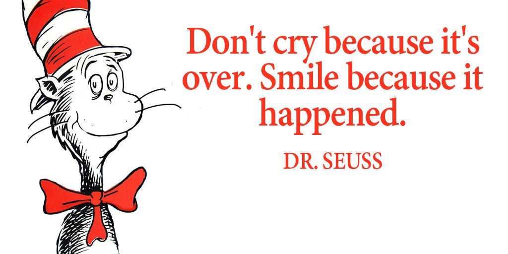 Don't cry because it's over. Smile because it happened. - Dr. Seuss
