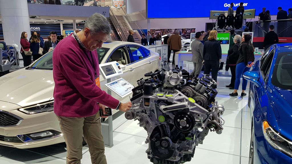 #FordNAIAS,@edans examinando un motor de combustión como lo que es, un dinosaurio del siglo XXI.pic.twitter.com/UvO9UumHT5