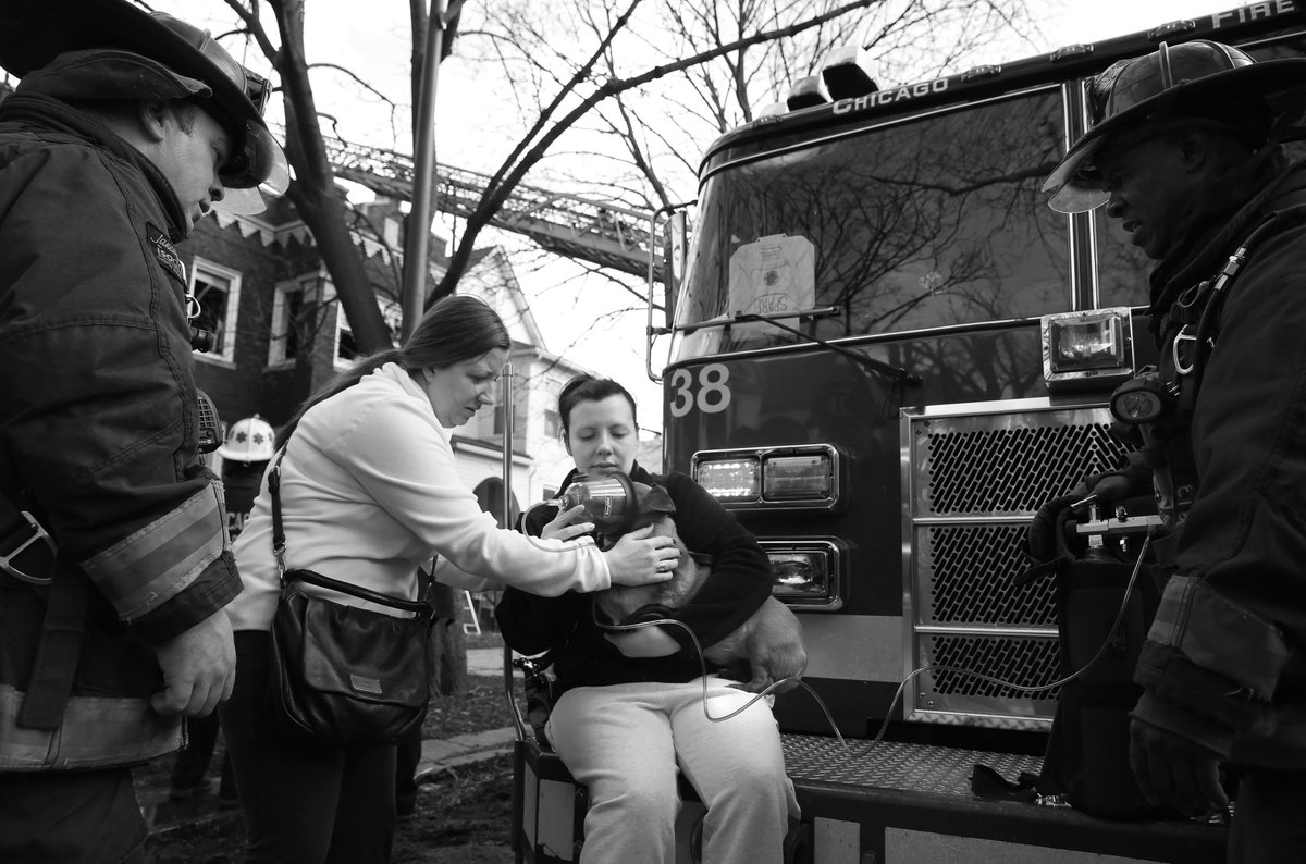 Felicia Knipp administers oxygen to her mother's dog Marley after a fire in Chicago's Albany Park neighborhood.pic.twitter.com/AfaLY7jF2Y