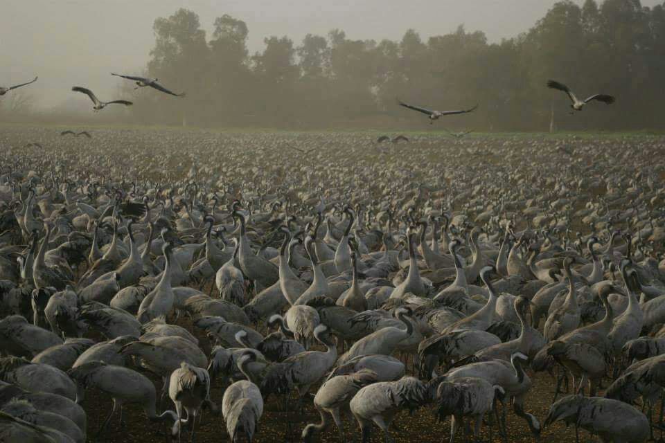 Ce matin on a compté 45.400 grues dans la vallée de Hula en Galilée. Via