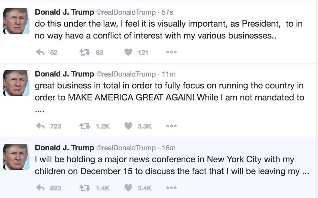 19. הדונלד עכשיו מבטיח להתנתק מעסקיו כדי להתמקד בנשיאות, הפרטים במסיבת עיתונאים אבל אל תחזיקו נשימה: זה רק עוד שבועיים