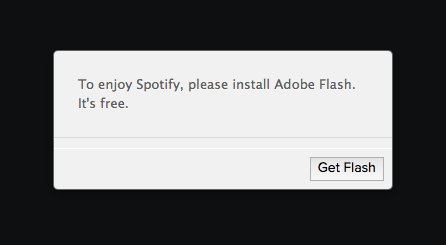"To enjoy Spotify, please install Adobe Flash. It's free." It is also 2017, friend.