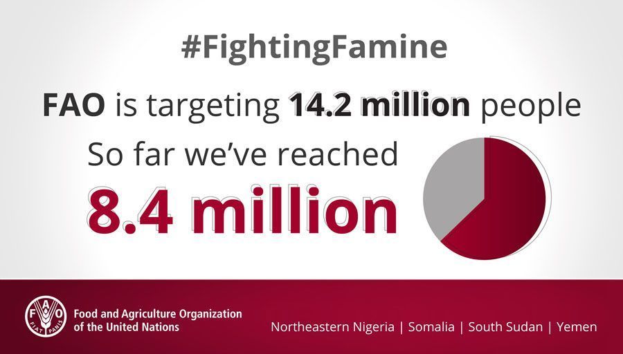 "Across the 4 countries, FAO has reached over 8.4 million people in 2017, just over half of our target" --