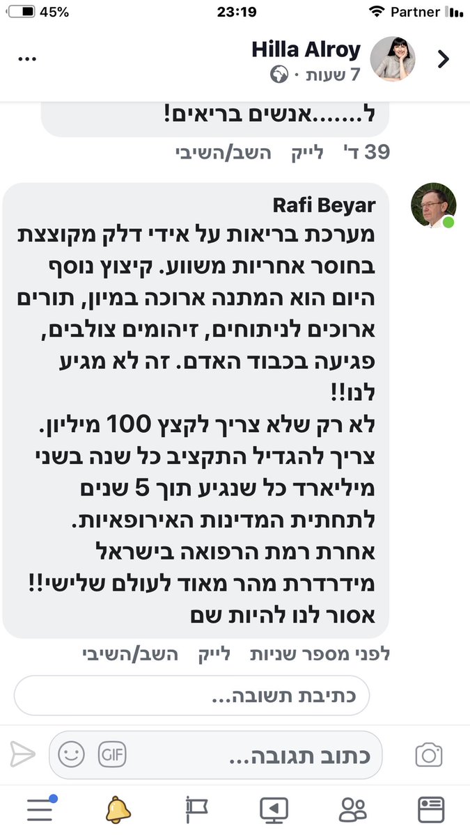 @RambamHCC רמב״ם שבחיפה לפוסט שהעליתי בפייסבוק בעקבות ההחלטה על קיצוץ 100 מליון שקלים במערכת הבריאות הגוועת שלנו. אחד המנהלים המוכשרים במדינה. איש עדין שלא נוטה להתלהם.Показати цей потікДякуємо. Твіттер використає ці відомості, щоб покращити вашу стрічку. СкасуватиСкасувати -