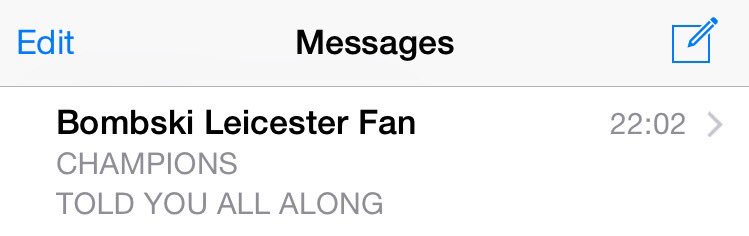 Congratulations to Leicester City, Premier League winners 2015/16. What a story. What a season.