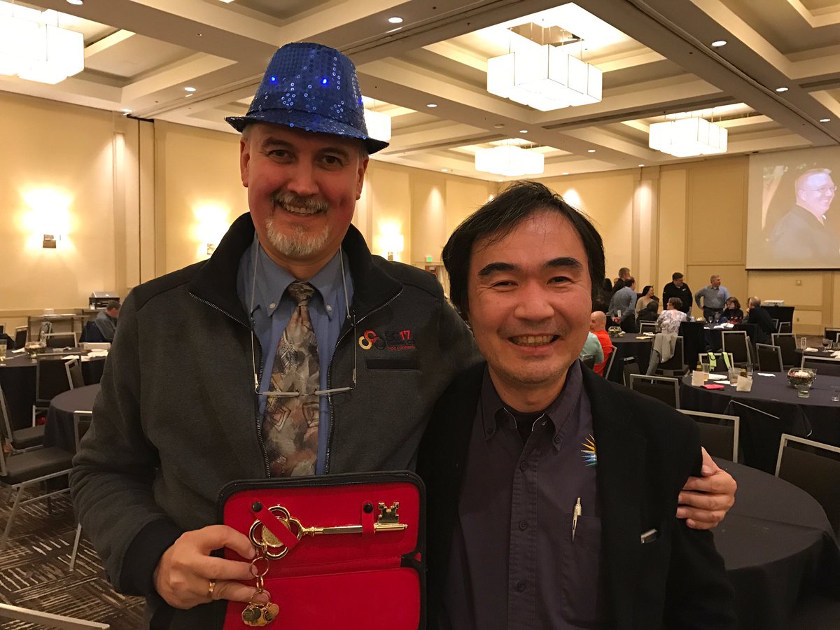 #SC16 is finally over! Our thoughts are now turning to#SC17. Berndt Mohr, general chair with the SC key & Franck Cappello with the sticker.pic.twitter.com/a3Dsp46QWV