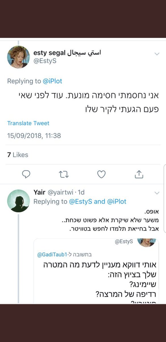 לא נכון. נחסמת בגלל תגובה דוחה. וכך המדיניות שלי פה. רשעות, קנטרנות, עלבונות או שנאות אישיות, יד קלה על הבלוק. לא מתאים.