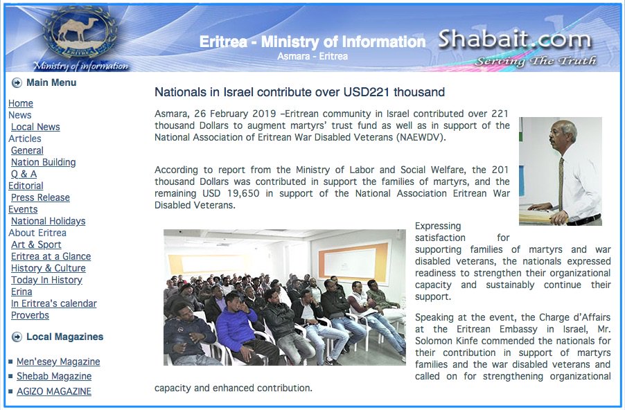 נכון שמנפחים לכם את המוח כמה שהמסתננים אומללים וחסרי כול וכמה שחוק הפיקדון דירדר אותם לרעב ולזנות וכמה שהילדים מסתובבים בבלואי סחבות ובכרסים נפוחות מרעב? אז זהו שזה שקר גמור. תראו את ההודעה הזאת של משרד ההסברה באסמרה שמתגאה בתרומה של 221,000 דולר מקהילת המסתננים האריתראים בישראל.pic.twitter.com/2IeLCTI3hF