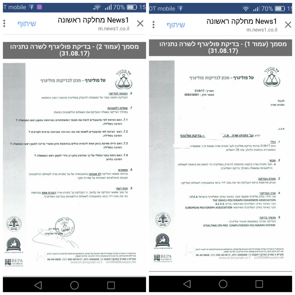 אישור מכון הפוליגרף שבו נבדקה גב' שרה נתניהו ונמצאה דוברת אמת בפרשת המעונות ,שתפו שכל אזרחי ישראל ידעו מהי האמת