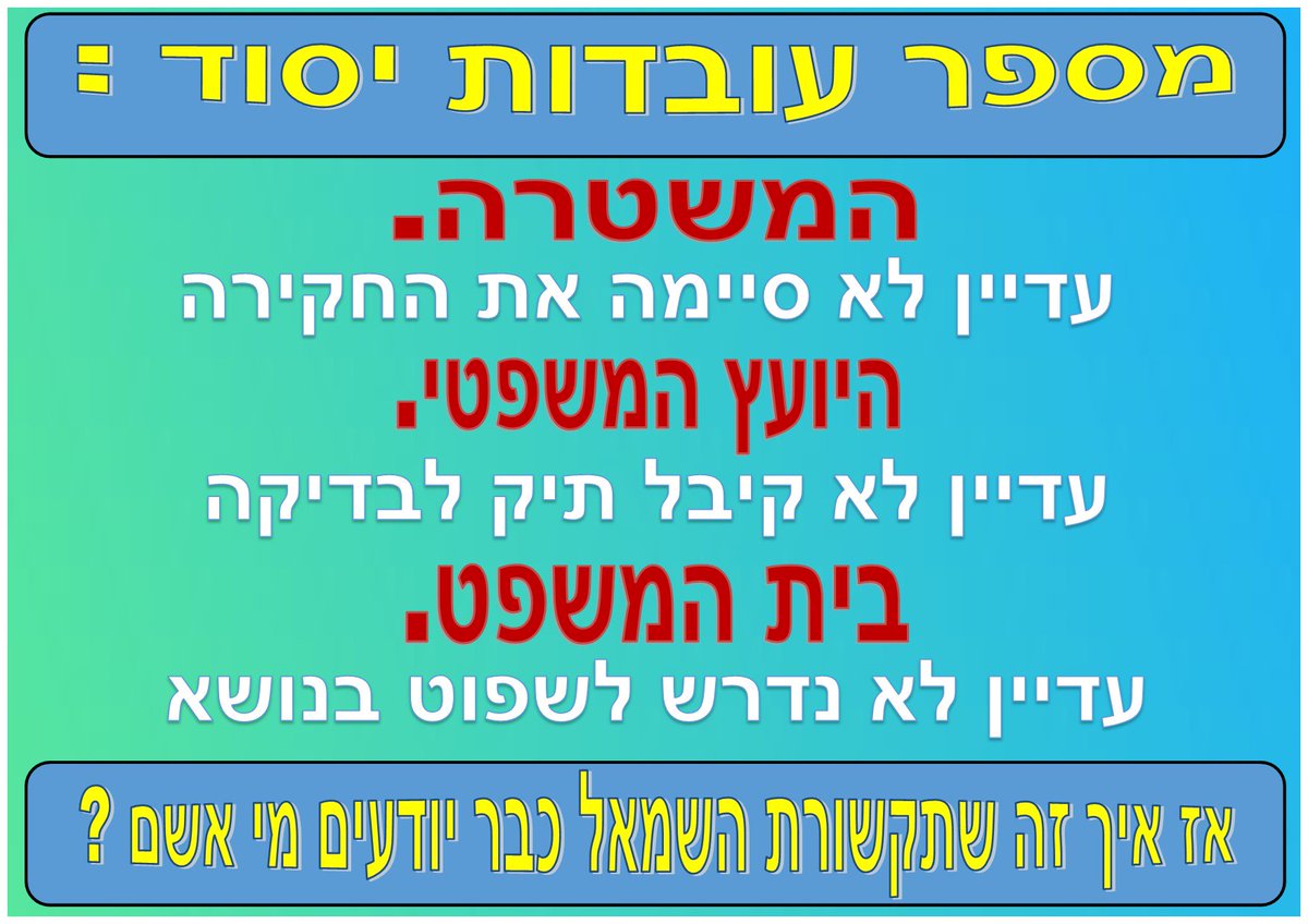 כל מי שקם על צד שמאל פונה לש' המשפטים או ליועמ"ש בבקשה לפתיחת חקירה כנגד מי שבא לו - רה"מ או פרקליט המדינה וכו' -שלטון מערכת המשפט! דיקטטורהpic.twitter.com/WjR92ymKb3