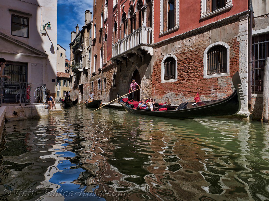 Gondola on Malibran Canal, in front of Bragadin Carabba Palace (15th cent.) where lived Casanova, in Castello District in Venice.