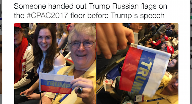 CPAC attendees tricked into waving Russian flags with Trump's name: http://hill.cm/aeyuS3V pic.twitter.com/xLHYRlu5nb