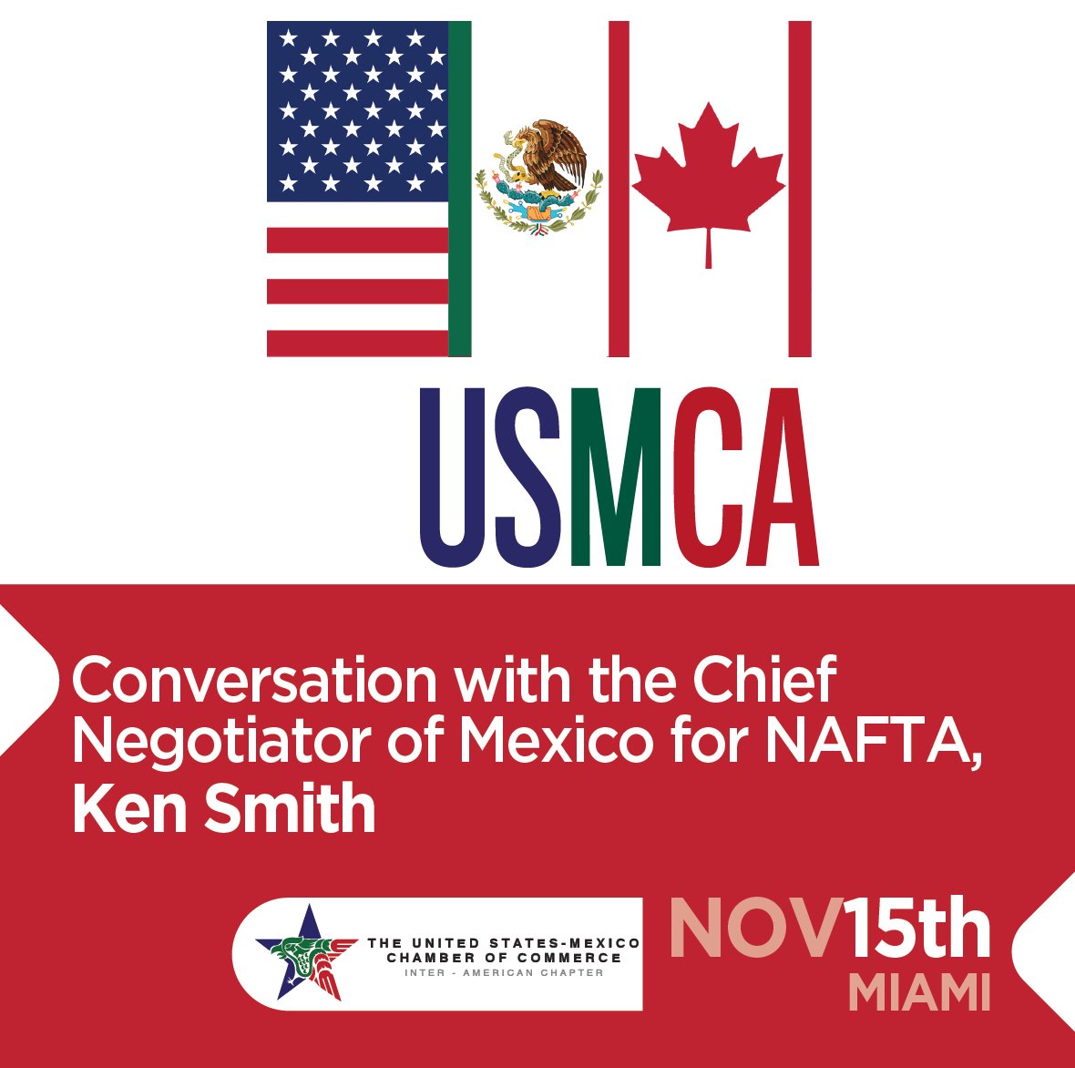 @usmcocia for this event: USMCA: Conversation with the Chief Negotiator of Mexico for NAFTA, Ken Smith#NAFTA#USMCA#Mexico#Miami@grayrobinsonlaw http://bit.ly/2TdRIFu pic.twitter.com/VD4xKHy4PH