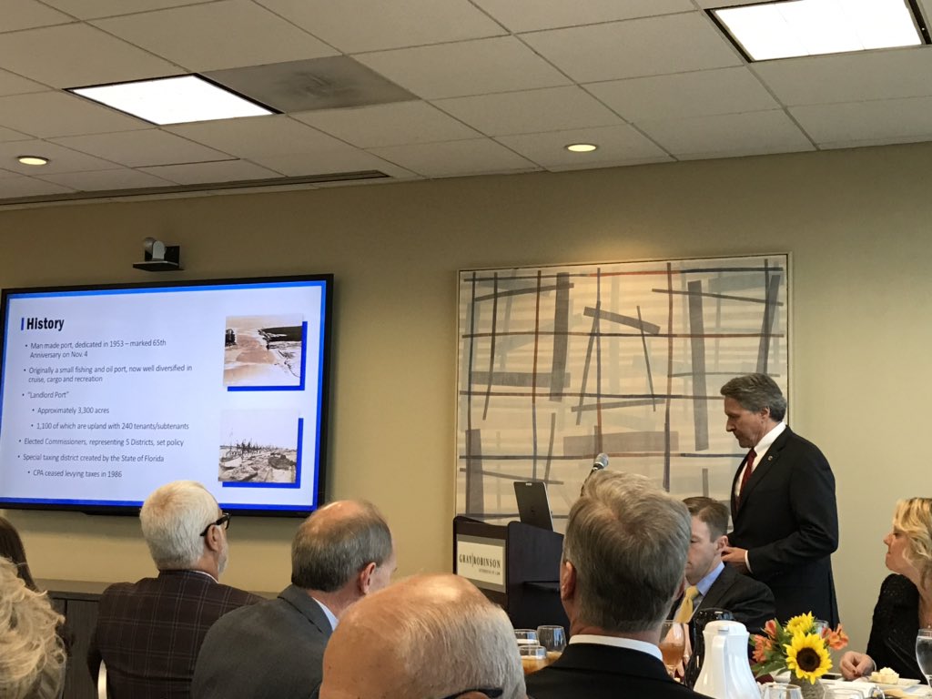 @PortCanaveral as our guest speaker for today’s@grayrobinsonlaw#GRForum. Sharing with the community the amazing growth and opportunity at the Port and this years many records!pic.twitter.com/0Ipa7HDapn