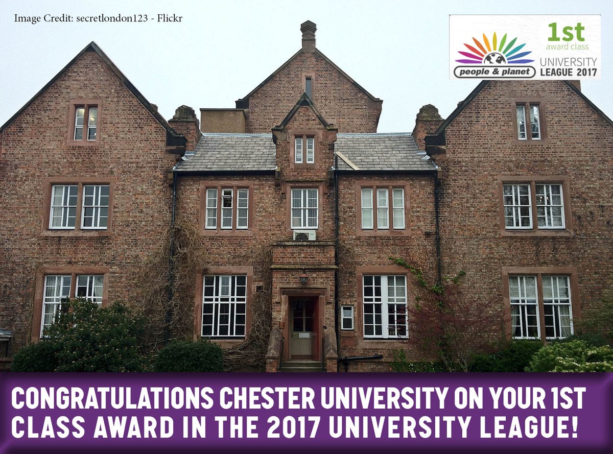 @uochester has been awarded 1st Class in the@peopleandplanet#UniversityLeague2017! A huge thank-you to everyone that helps us to embed sustainability across the University!pic.twitter.com/56mDgJosjU