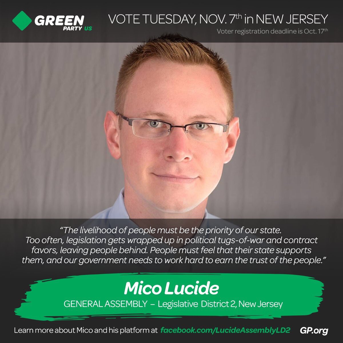 @MicoLucideNJ for General Assembly in New Jersey: http://www.facebook.com/LucideAssemblyLD2/ …