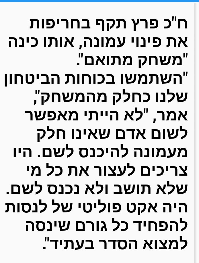 מה שמותר לרמטכ"ל אסור לראש הממשלה. הרמטכ"ל מינה להיות דובר צה"ל את רונן מנליס, והרמטכ"ל אמר שהוא סומך עליו.