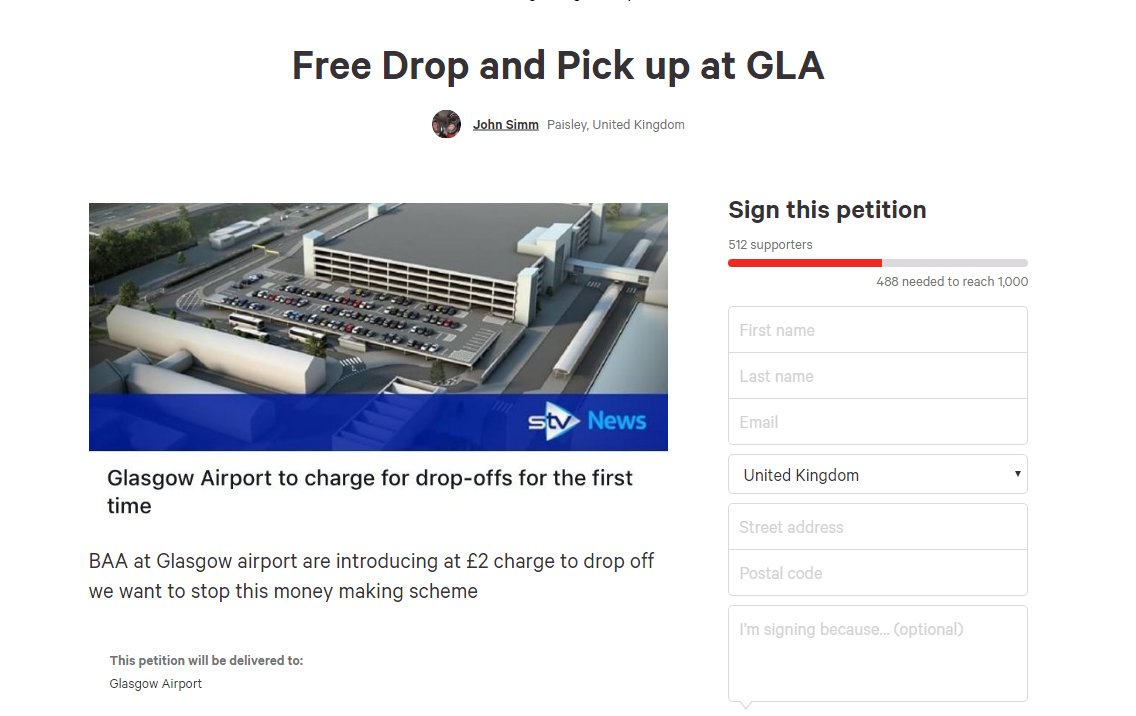 A petition's been started against Glasgow Airport's plans to charge motorists to drop off passengers