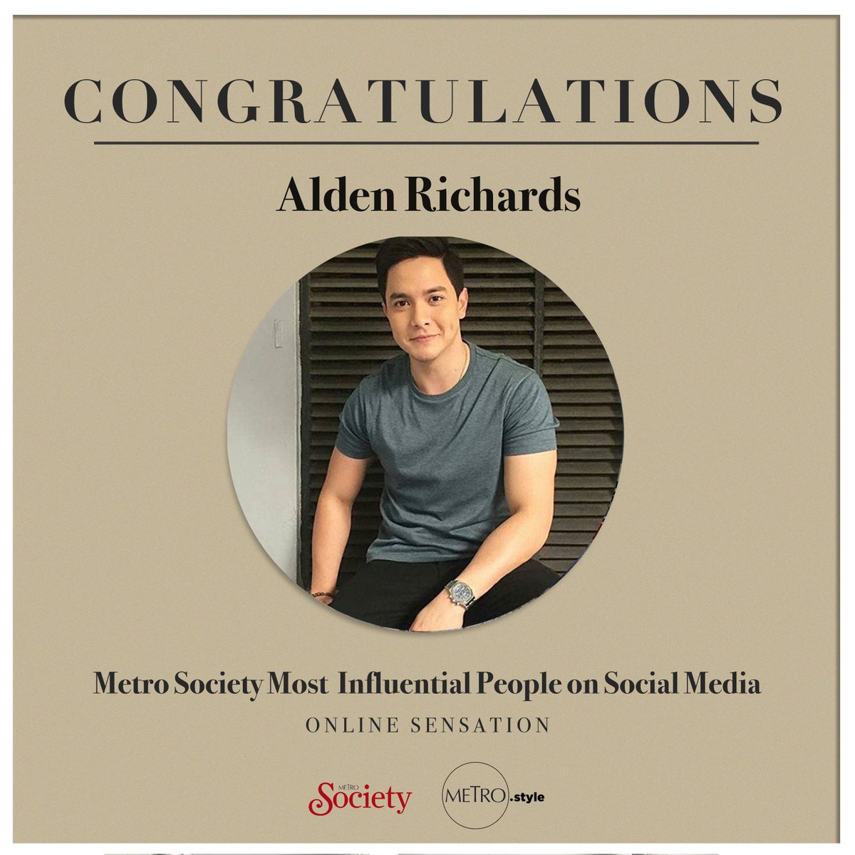 @aldenrichards02 (#AldenRichards) for making it to the list of the#MetroSocietyMostInfluential 2018! Read more about him on this link: http://bit.ly/2t6XGPp