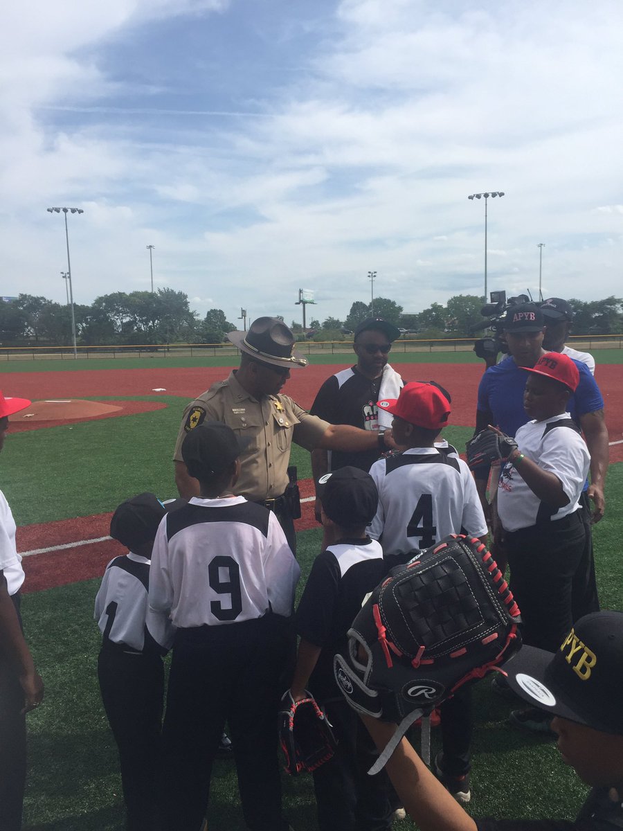 The Illinois State Police participating in the Austin Youth Police Baseball League. The league is coached by ISP...