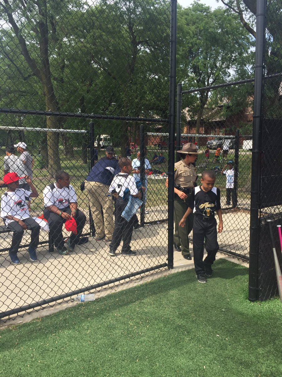 The Illinois State Police participating in the Austin Youth Police Baseball League in Chicago's Austin neighborhood. Opening Day!