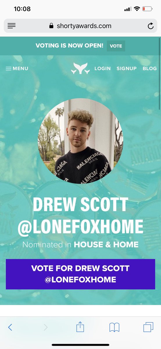 Don’t forget to vote for me under the House and Home category of the Shorty Awards!!! I am so thankful for all of you and I think we can win this! https://shortyawards.com//11th/imdrewscott …pic.twitter.com/m2u0nQBCvw