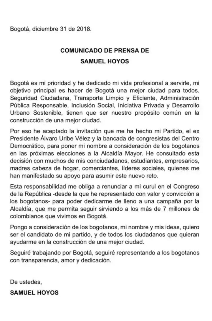 Samuel Hoyos ha sido un formidable congresista, intachable, juicioso, propositivo. Conoce la ciudad muy bien. Sería un magnífico Alcalde de Bogotá. La carrera en el CD está abierta. Después vendrá la interpartidista para vencer unidos a la izquierda populista, demagoga y corruptapic.twitter.com/2x2pbRJHEr