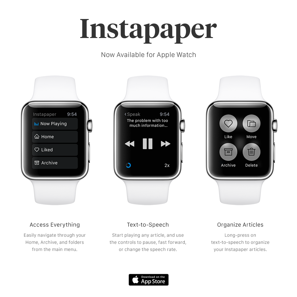 19. Thanks to for featuring the new Instapaper Apple Watch app!