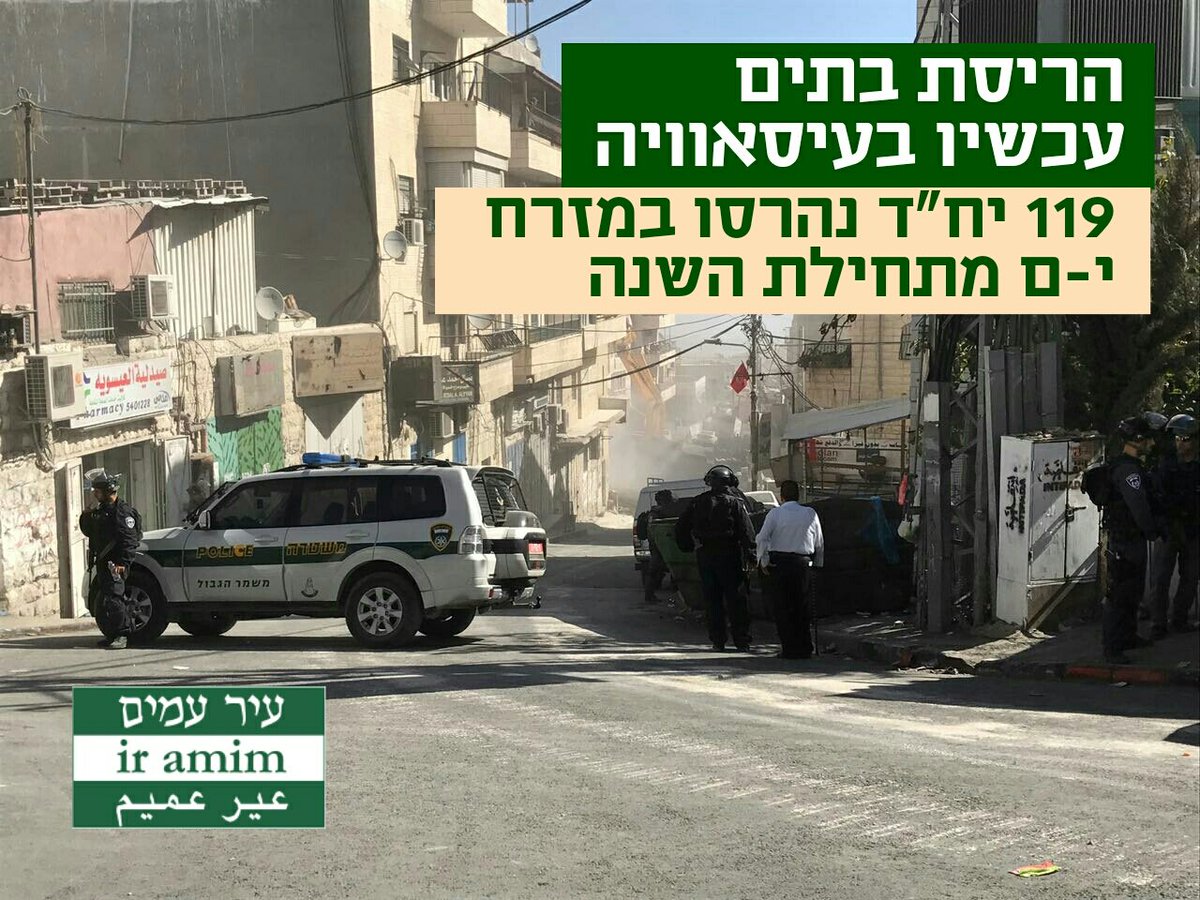 הריסה בעיסאוויה. בהריסה הבוקר בוואדי ג'וז 2 יח"ד מאוכלסות, 2 בבנייה ומספר חנויות. מתחילת השנה נהרסו 119 מבנים למגורים ובסה"כ כ 170 מבניםpic.twitter.com/kDWRHEI9Gs