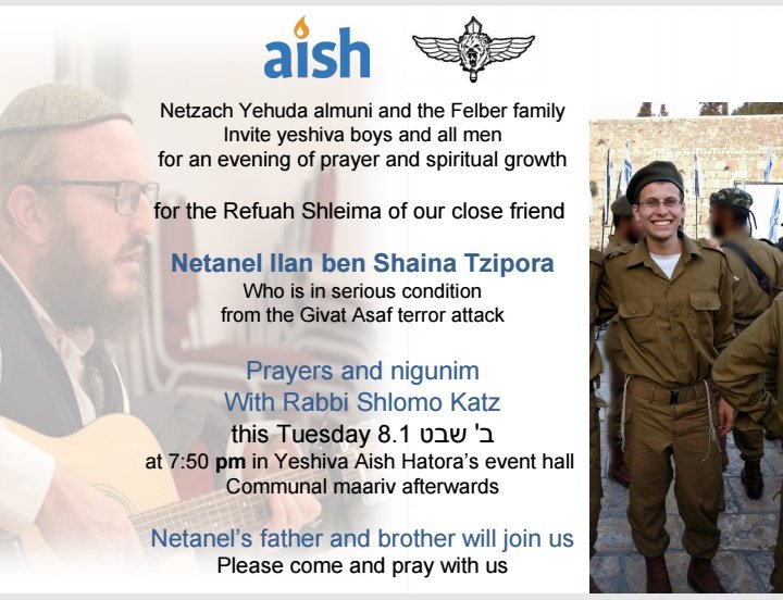 אמש בערב שירה של בוגרי נצח יהודה לרפואת הלוחם הפצוע נתנאל אילן בן שיינא ציפורה
